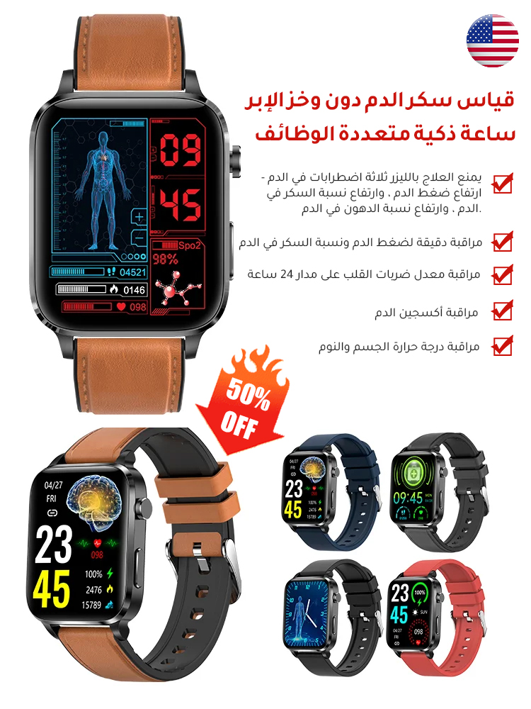 خالي من الإبر ساعة ذكية لجلوكوز الدم
