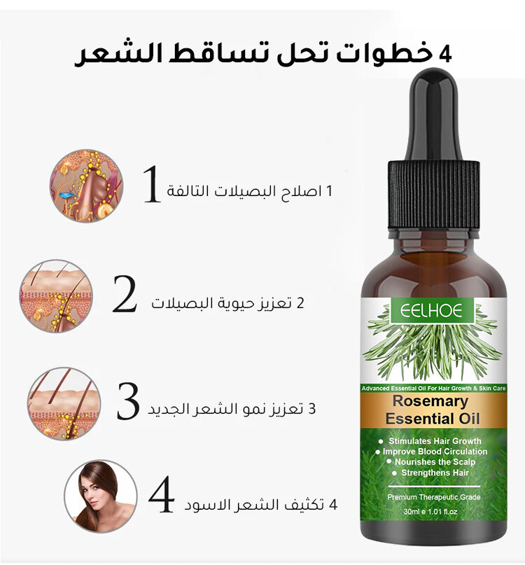 زيت عطري من مستخلصات إكليل الجبل لتعزيز نمو الشعر