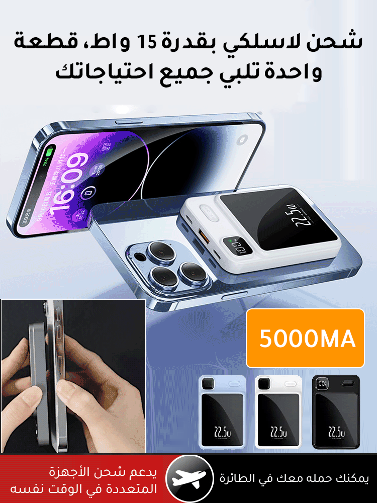 شاحن متنقل نحيف مضغوط مع جذب مغناطيسي من سبائك الألومنيوم