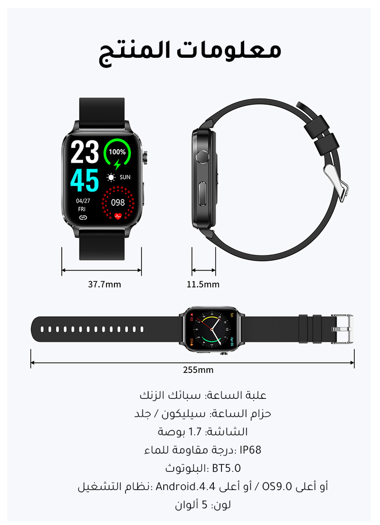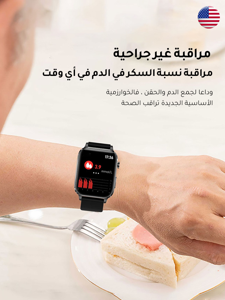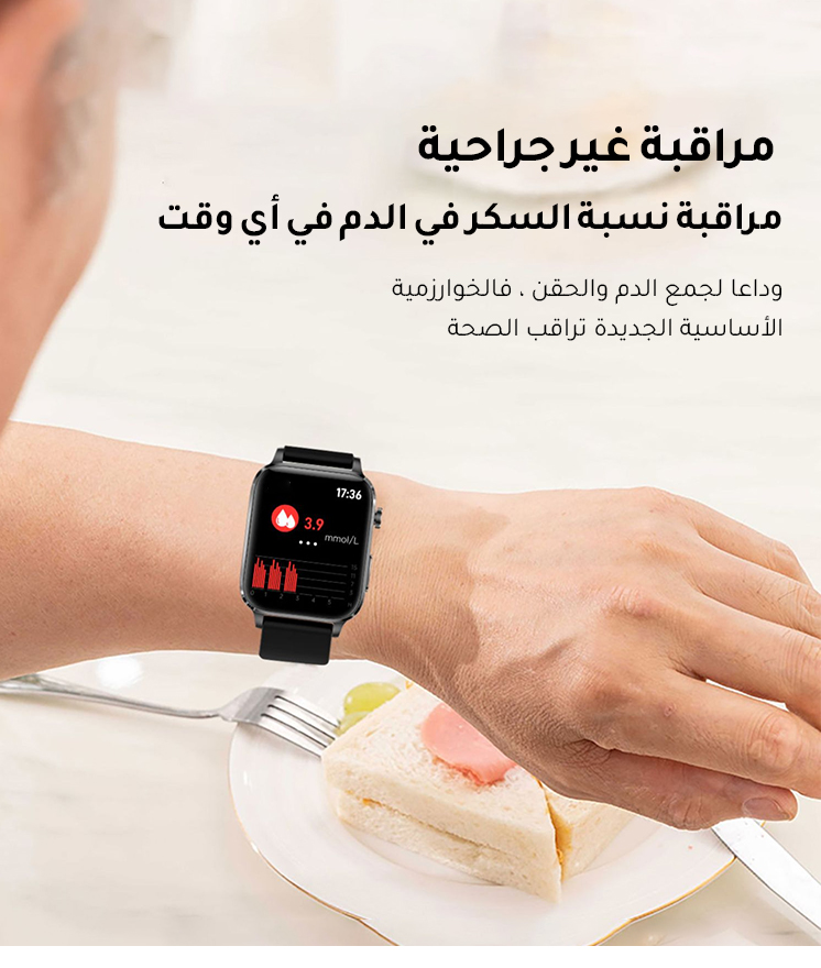 خالي من الإبر ساعة ذكية لجلوكوز الدم