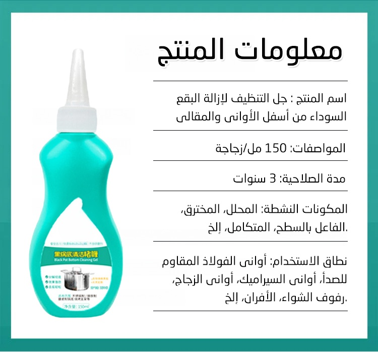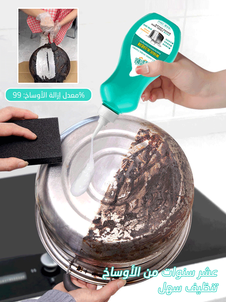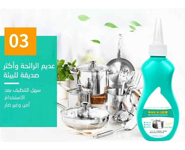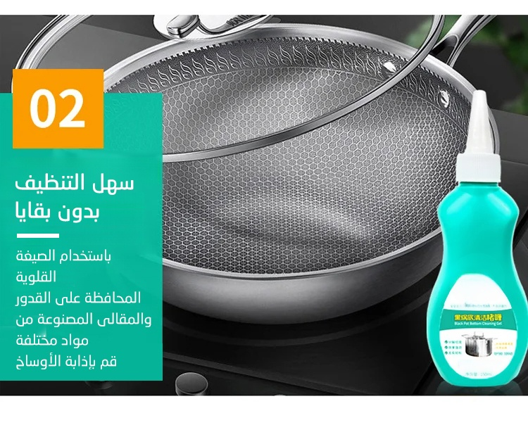 جل التنظيف لإزالة البقع السوداء من أسفل الأواني والمقالي