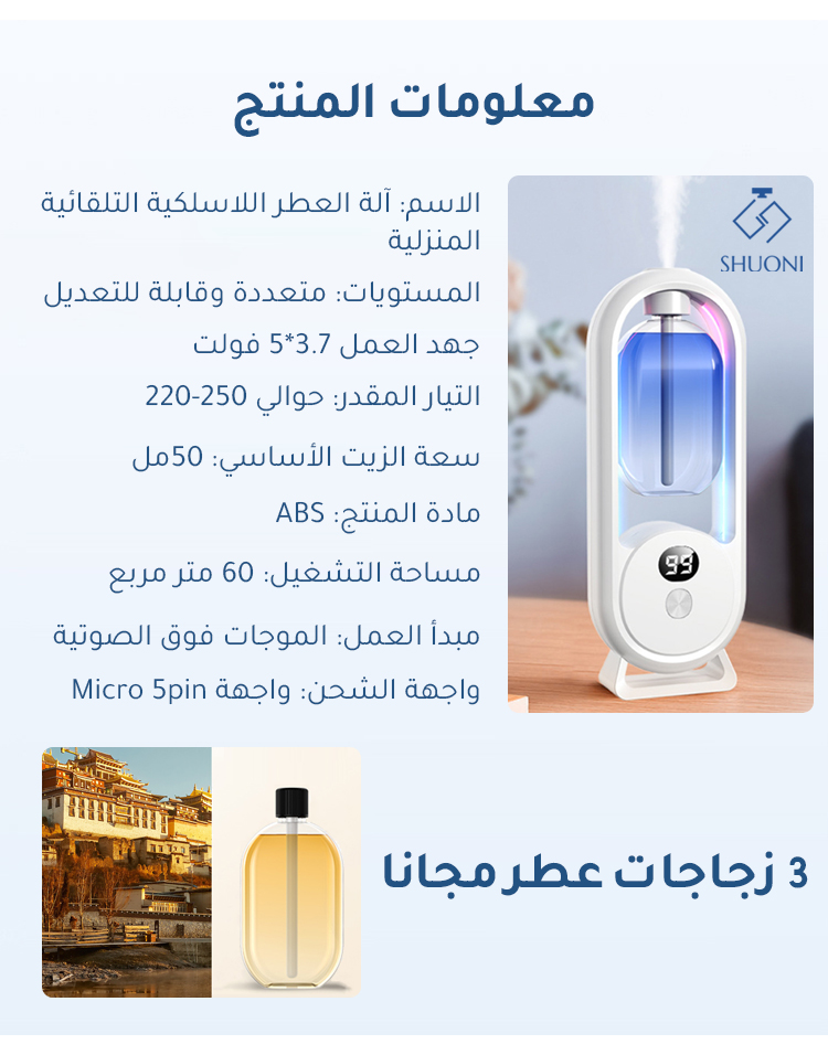 آلة العطر اللاسلكية التلقائية المنزلية مع شاشة رقمية