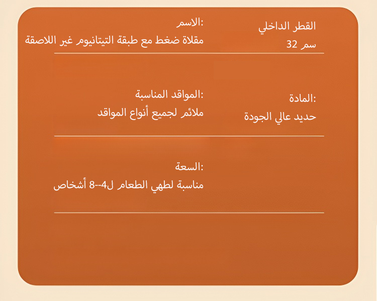 مقلاة ضغط مع طبقة التيتانيوم غير اللاصقة