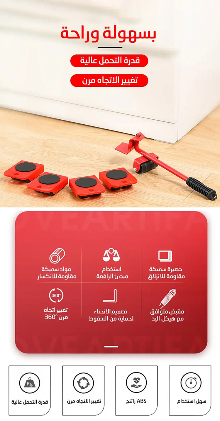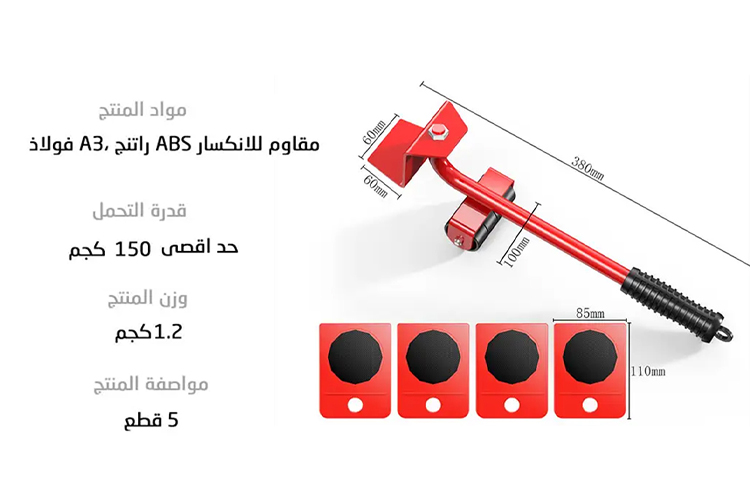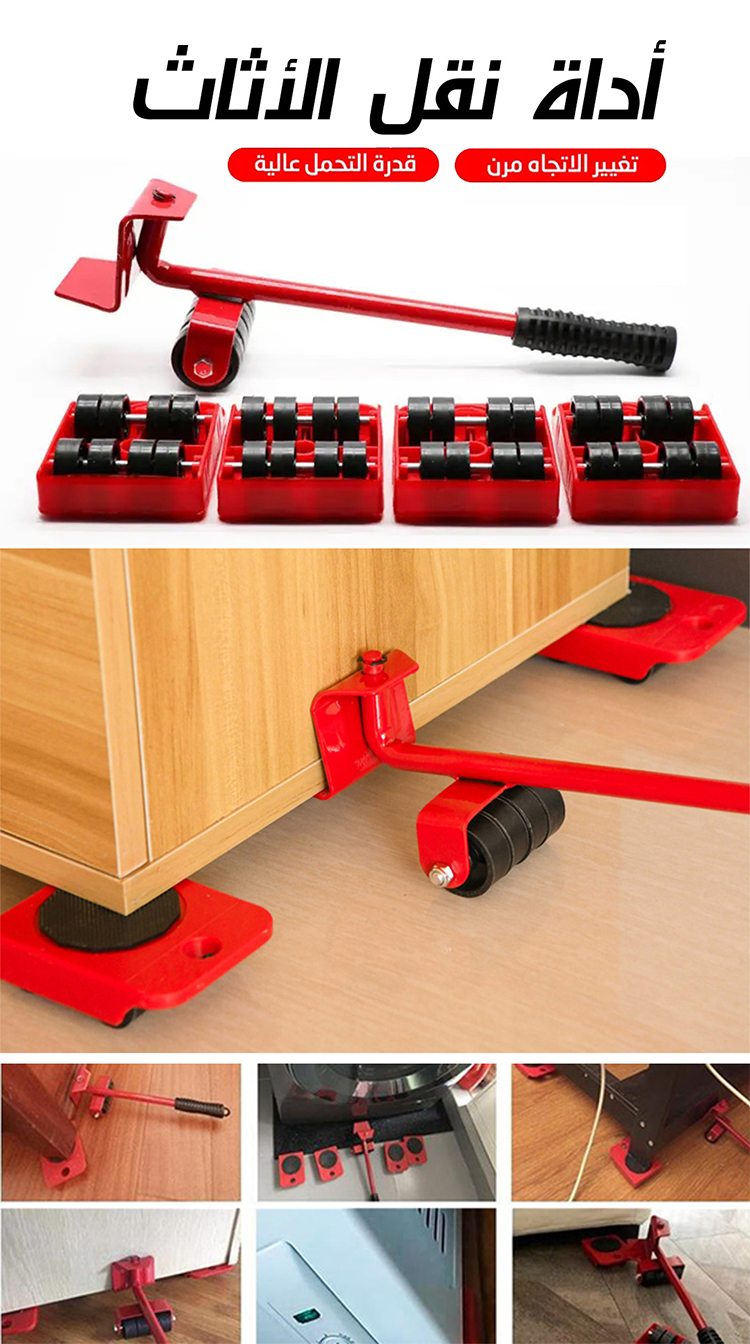 مجموعة نقل الأثاث المنزلي 5 قطع تتضمن أدوات نقل الأشياء الثقيلة بألوان متنوعة