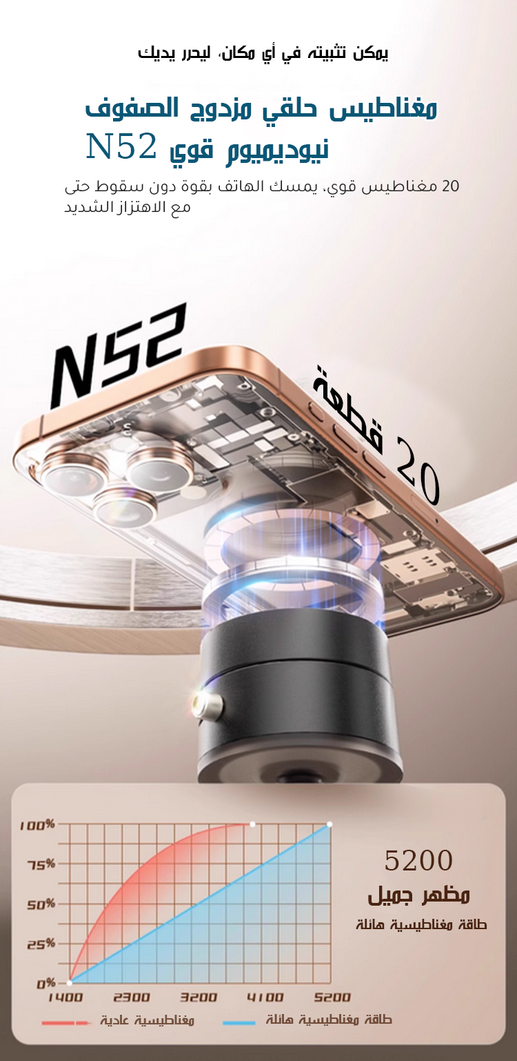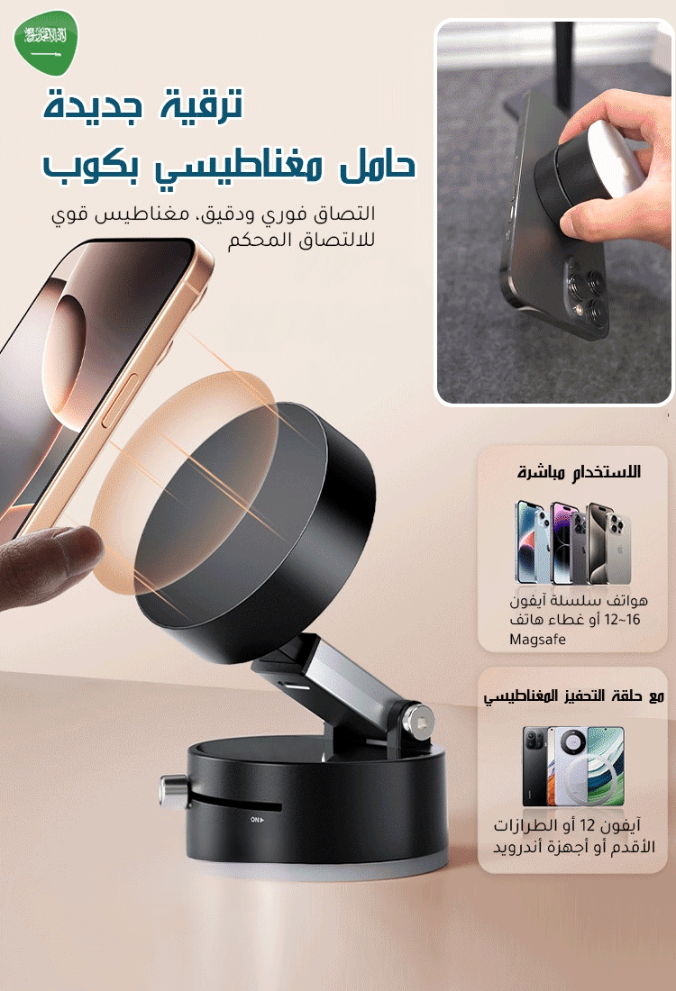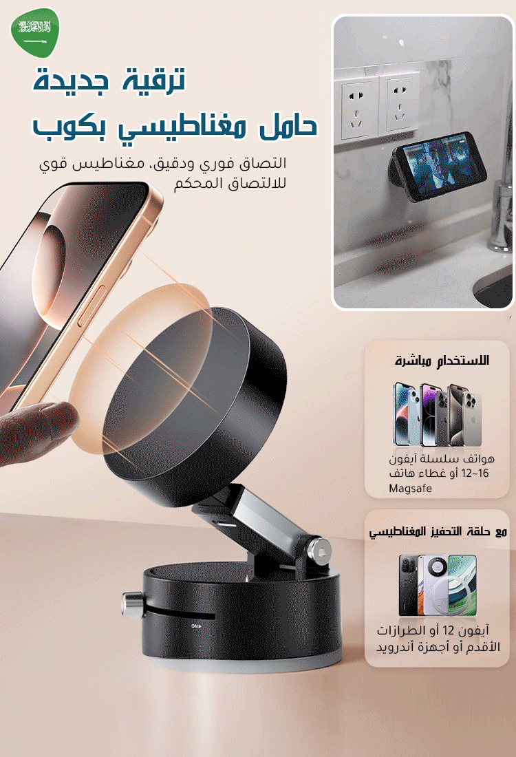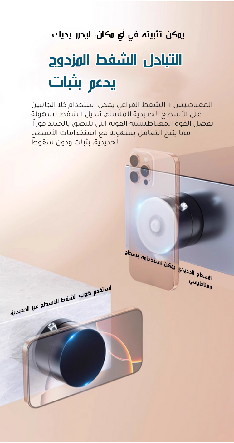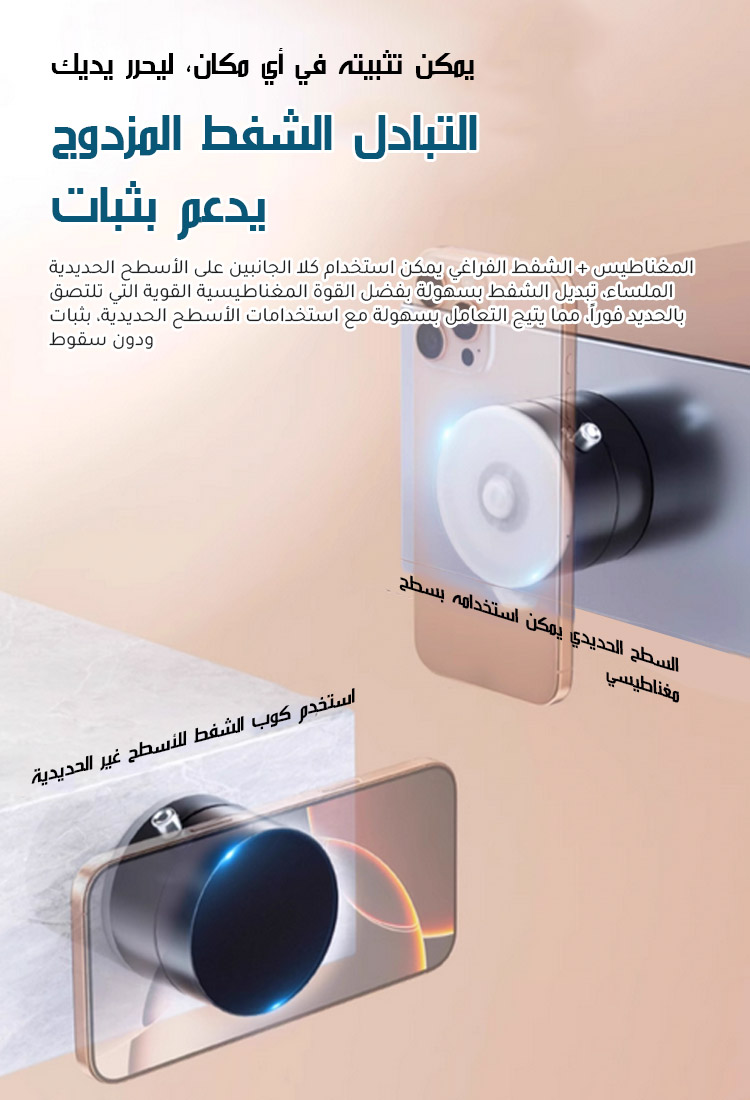 【لا يمكن السقوط حتى بالهز الشدي】 حامل هاتف مغناطيسي ذو شفط مزدوج الجوانب