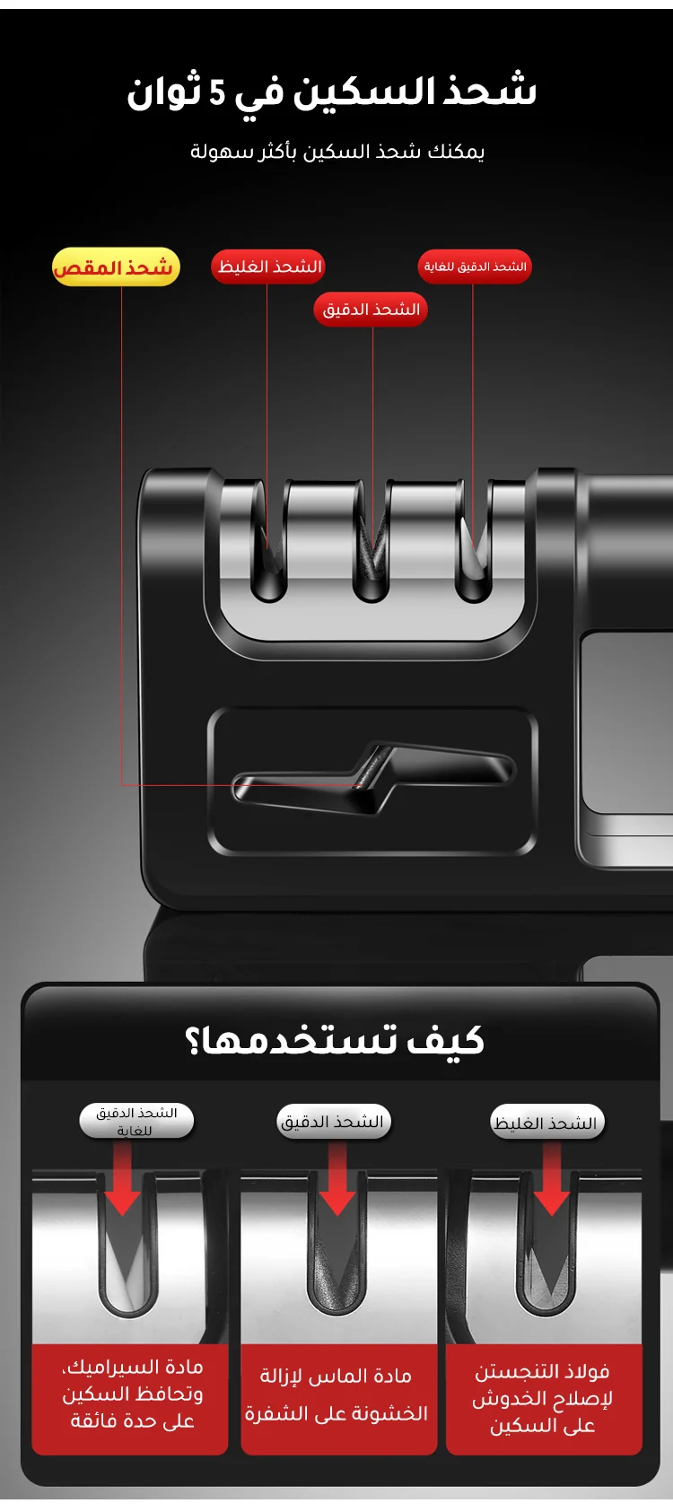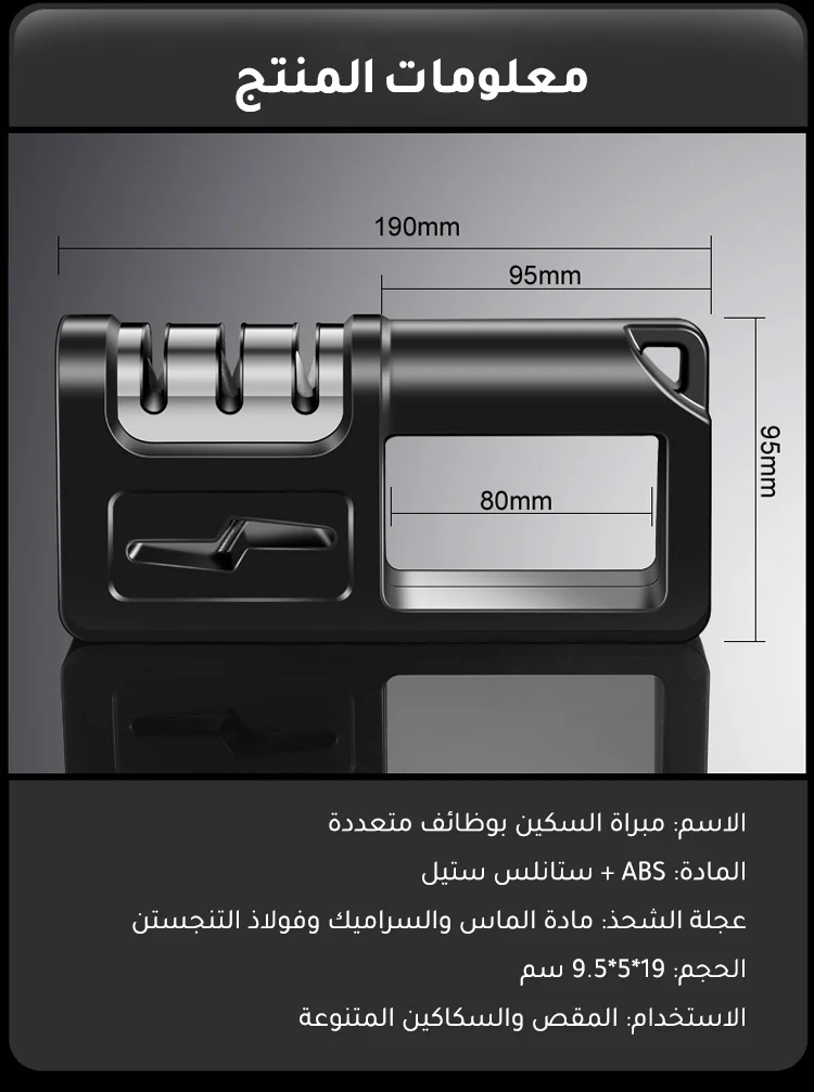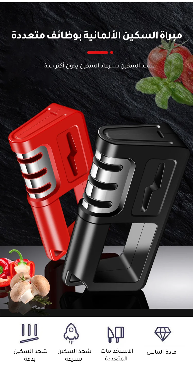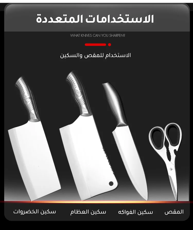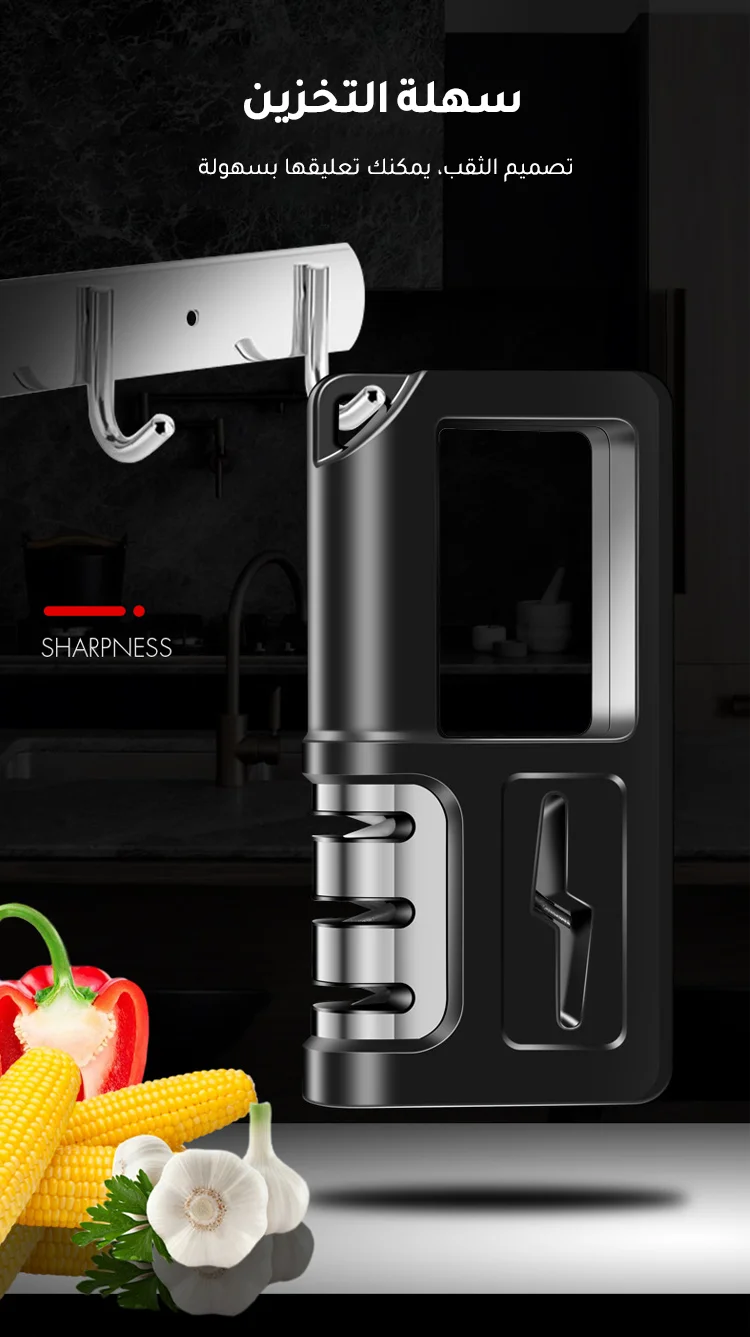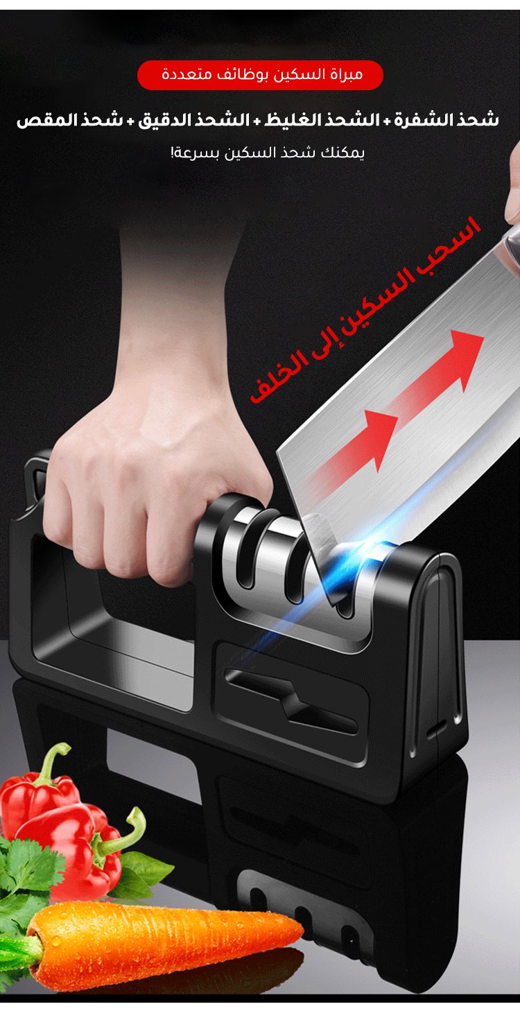 جهاز محمول لشحذ السكاكين في المطبخ يحتوي على قضيب شحذ متعدد الاستخدامات ويعمل بسرعة وفعالية
